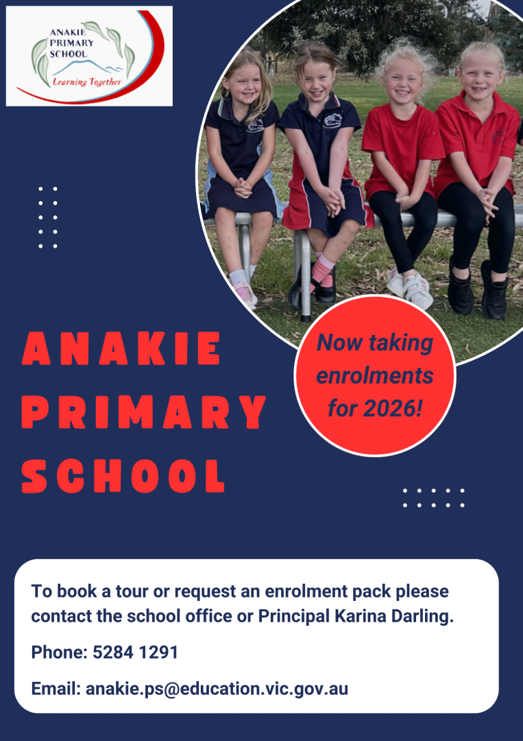 We are excited to welcome you to Anakie Primary School and look forward to providing you with an individualised school tour.