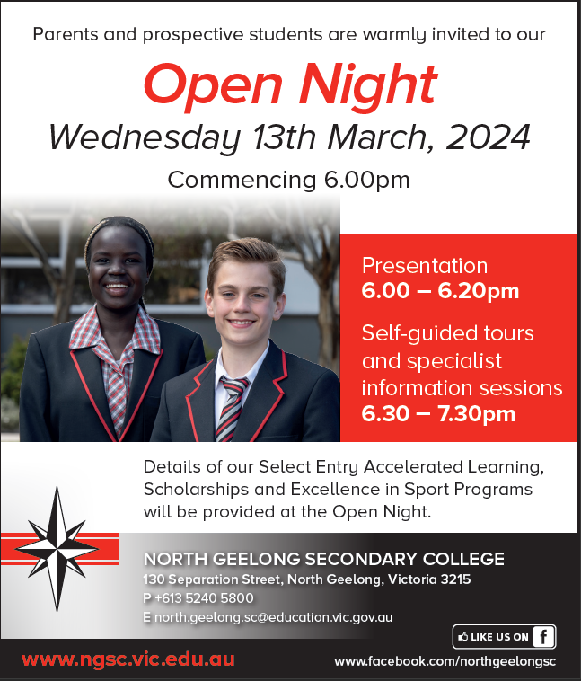 Lara Secondary College invite you to our upcoming Information Night at the College on Monday 4th March 2024 at 5.30pm, where we will provide details about our programs and initiatives. A short presentation at 5.30pm will be followed by an opportunity to visit displays from all learning areas and allows time to properly view areas that are of interest to prospective students. We encourage parents/carers and prospective students to join us for a personal school tour before or after the Information Night, providing an excellent opportunity to see our school and classes in action. Tours with a member of our principal team can be booked by contacting Natalie Nocevski on (03) 5282 8988 or [email protected]